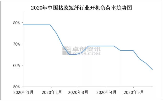 粘膠短纖是溶解漿最主要下游產品,占總消耗量90%以上,而中國是全球******的粘膠短纖市場,2019年粘膠短纖產能占全球69%,全球溶解漿消耗看中國,中國溶解漿市場前四企業占總產能比例64%,行業集中度高,如圖2,5月國內粘膠短纖市場開工負荷降至58%,降至年內新低,大廠開工負荷下降會直接導致市場需求快速降低,從而導致溶解漿市場交投停滯。